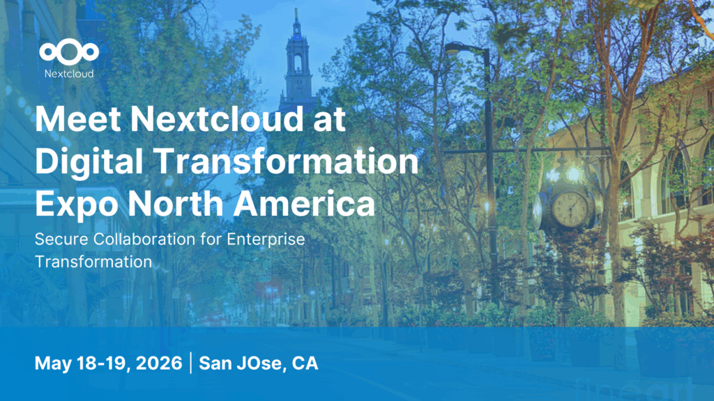 Meet Nextcloud at Digital Transformation Expo North America 2026! We’re excited to announce our participation in Digital Transformation Expo North America 2026, taking place May 18–19, 2026 at the San Jose McEnery Convention Center, California. As one of the leading events driving enterprise transformation through technology, the Expo brings together experts in cloud, cybersecurity, digital […]