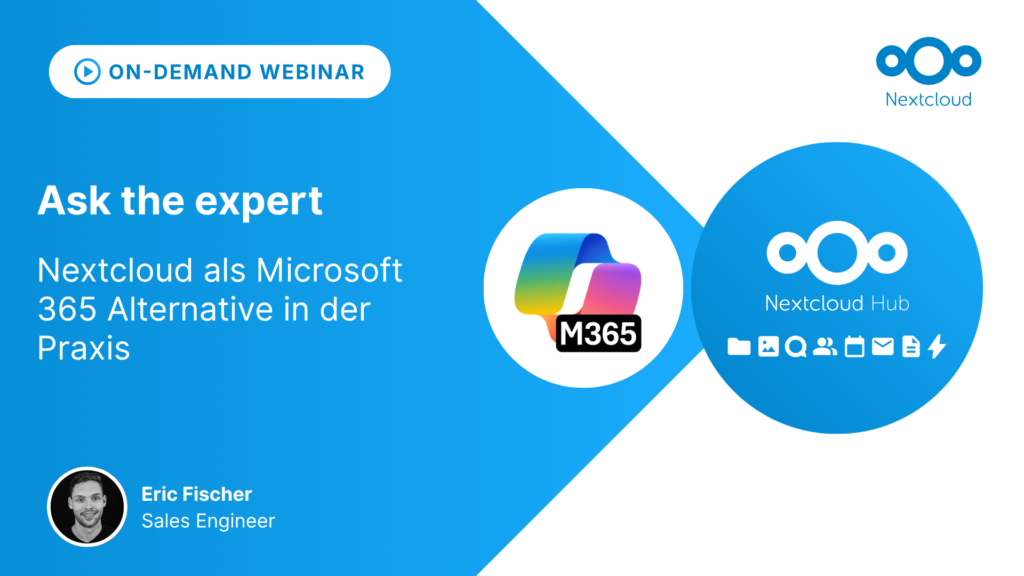 Entdecken Sie, wie Nextcloud Office im Vergleich zu Microsoft Office in puncto Produktivität, Compliance und täglicher Nutzung abschneidet – und behalten Sie dabei jederzeit die vollständige Kontrolle über Ihre Daten. Mit praxisnaher Live-Demo und einer Q&A-Session, professionell begleitet von unseren Experten.