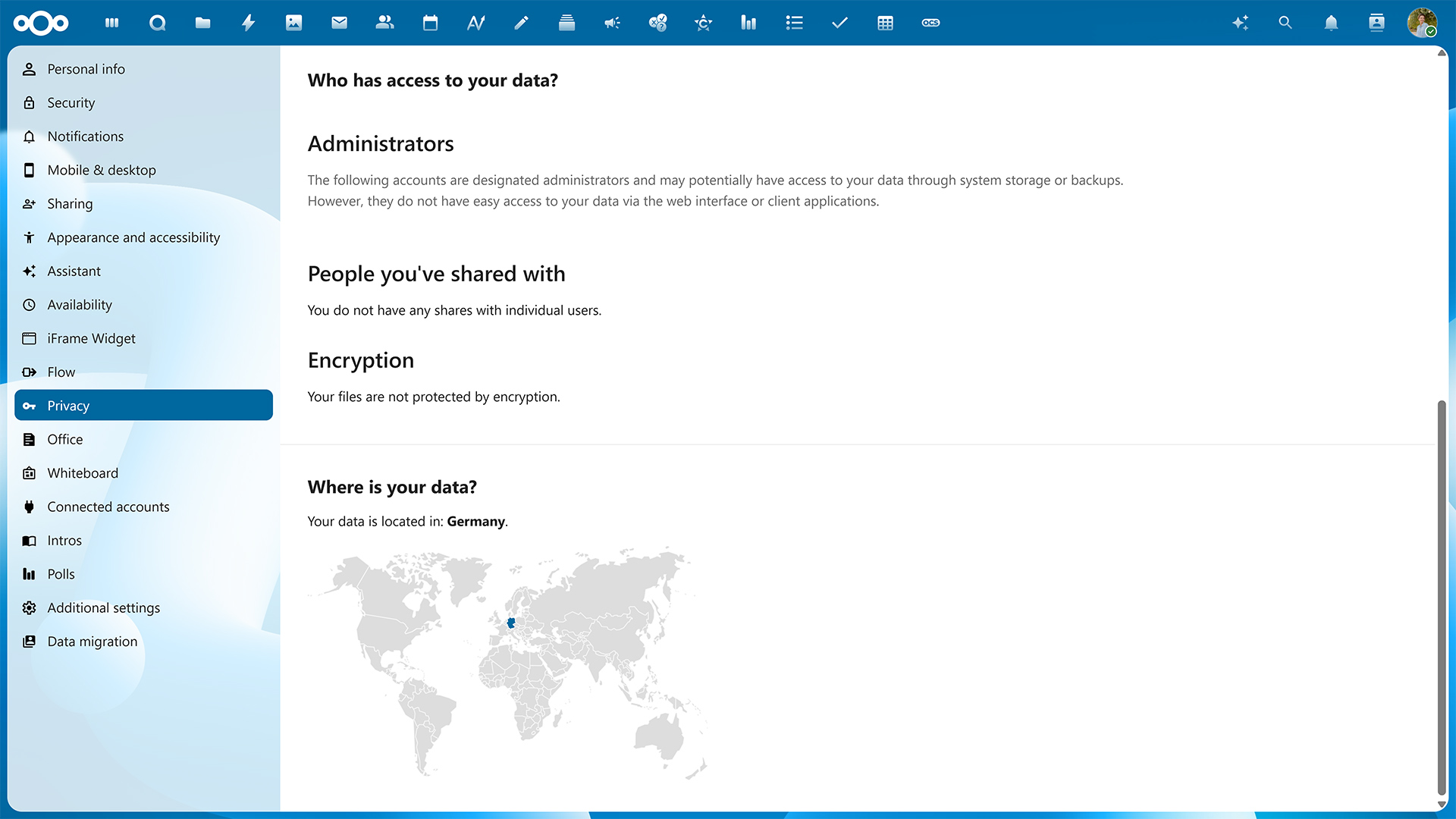 Chez Nextcloud, nous croyons que vous avez le droit de décider ce qu’il advient de vos données et de garder le maximum de contrôle sur ce qui ne vous appartient qu’à vous.