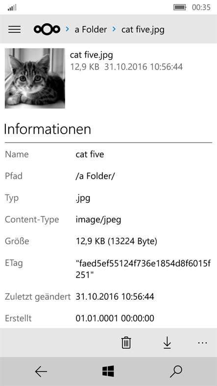 Share target: you can now share files and folders with the app. For example, you can upload files to your Nextcloud directly from within the Windows Files app.