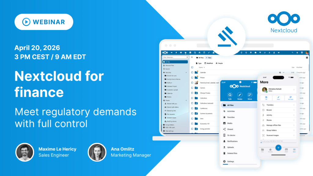 In this webinar, you will learn more about Nextcloud Enterprise platform, its advantages, deployment options, and get your questions answered by an expert.